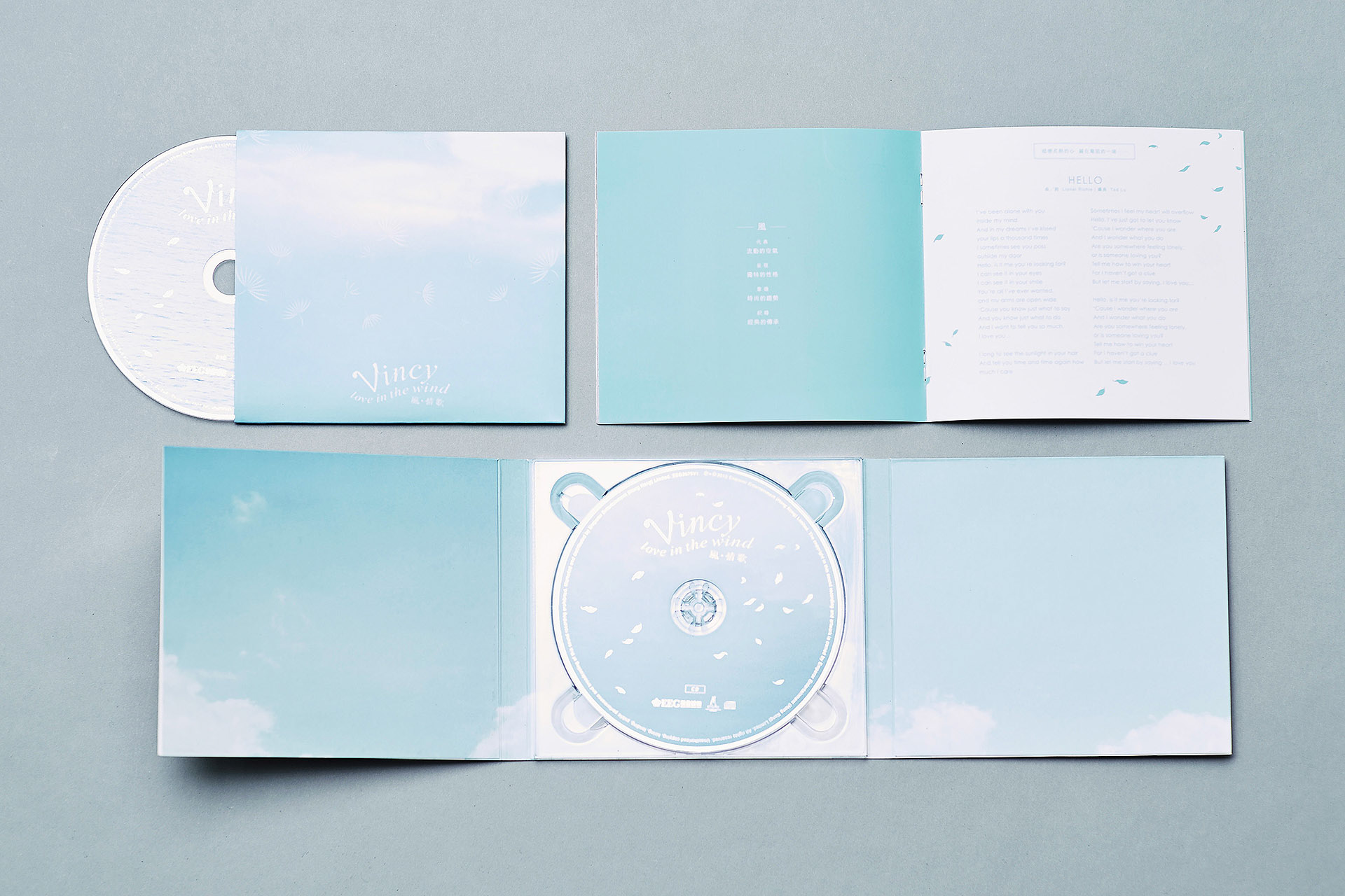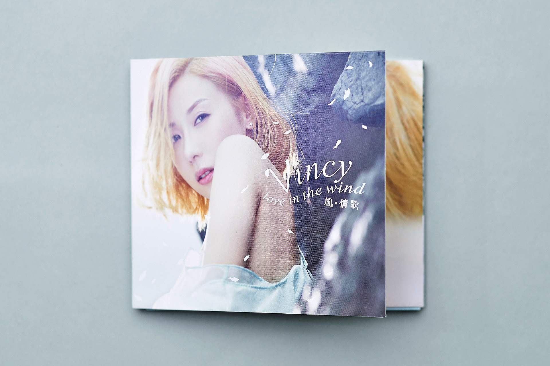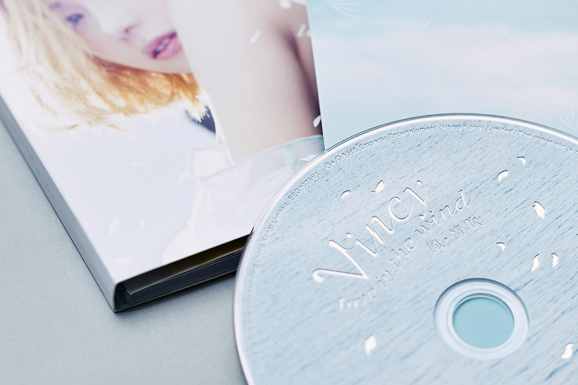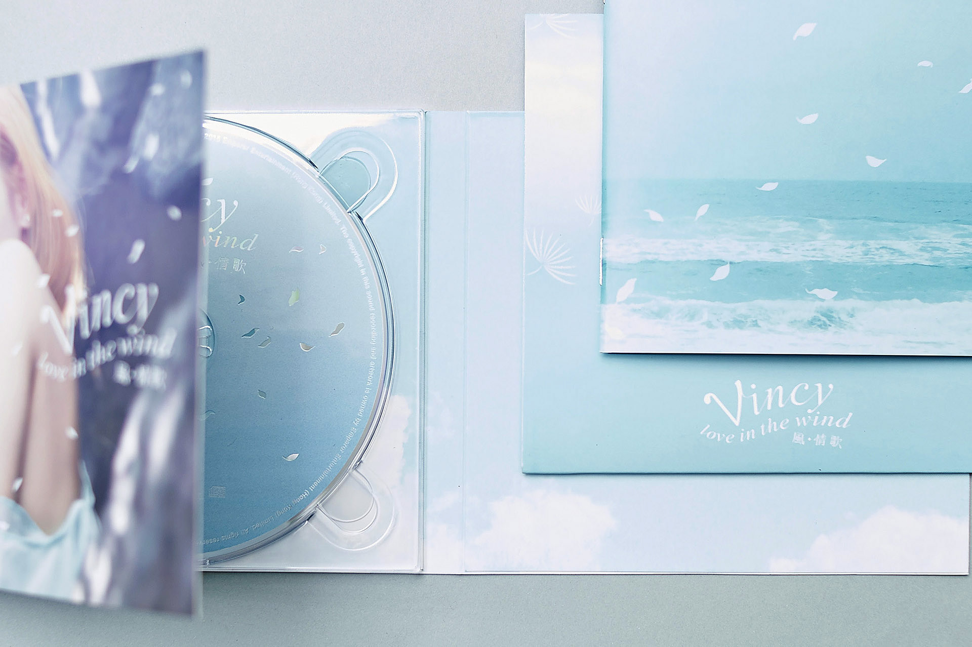 The refreshing vocal style is a famous characteristic of Vincy, which is representated with a pale blue colour in her CD album “Love In The Wind”. The soft color also matched the theme of “wind”.